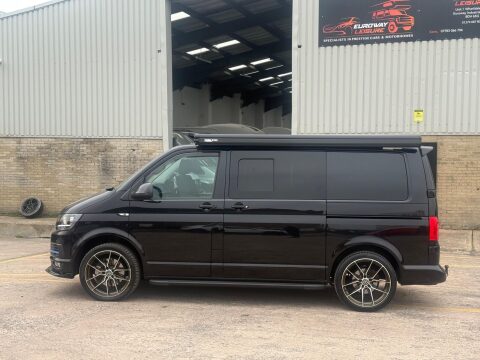 Euroway Leisure are happy to offer this absolutely stunning massive spec 2016 VW Transporter Highline camper conversion with the superb side hung bed so the vehicle can still be used like a van (get all your kit, bike, paddle board, fishing equipment etc inside!!!) and equipped with Vw's legendery DSG Automatic gearbox!!