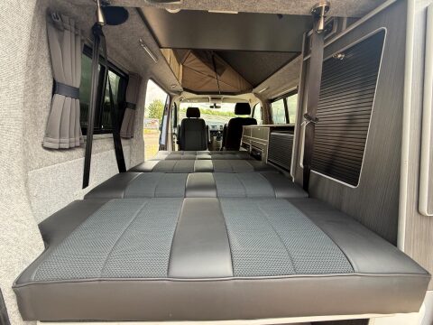 The Volkswagen campervan comes as standard with a Leisuredrive side lift elevating roof with optional children’s roof bed. Also available is our hi-top roof, again made in house and not only sleek and aesthetically stunning but with hundreds of hours in design and testing has been proven to offer superior fuel efficiency over other hi-tops.