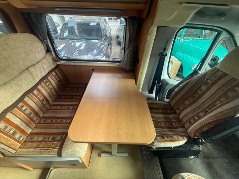 Layout & interior: The interior layout of this 2011 CI Carioca 694 (3500kg) consists of a fixed, good-sized rear double bed (French bed) with an adjacent washroom. This spacious washroom includes a separate shower, a WC, a washbasin, and a vanity unit. Midway, there's an L-shaped kitchen area equipped with a hob, grill/oven, microwave, 12v fridge, sink, and mixer tap. To the front of this CI Carioca is the living/dining area with a comfy bench seat and a smaller side bench seat that can convert into a bed. The cab seats swivel to maximise space. The Carioca 694 also offers ample storage with eye-level lockers, a wardrobe, and a large under-bed compartment.